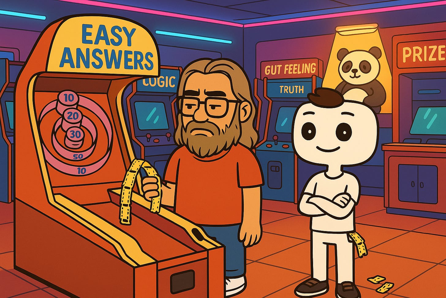 In a world where facts are negotiable and feelings hold a majority vote, two voices return to the arcade confessional. This week: “The Gospel of Feelings.” Because sometimes, it’s not about what’s true it’s about what feels like a win.